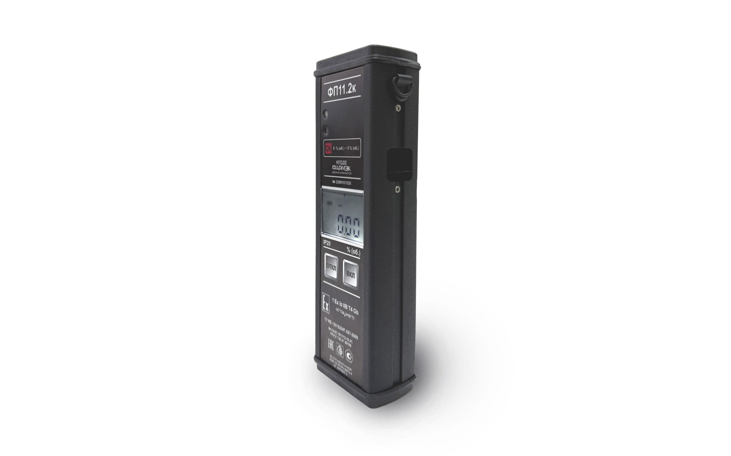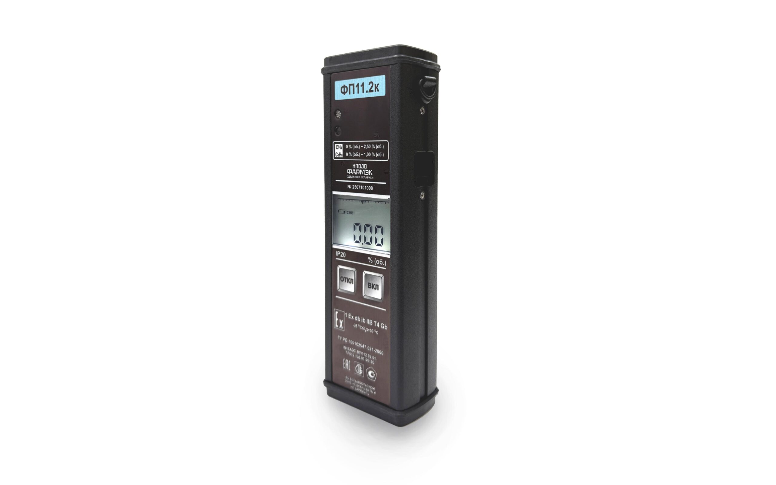 - Газоанализатор выполнен во взрывобезопасном исполнении с маркировкой взрывозащиты 1 Ех db ib IIВ T4 Gb (версия с термокаталитическим датчиком) или 1 Ex ib IIВ Т4 Gb (версия с оптическим датчиком).