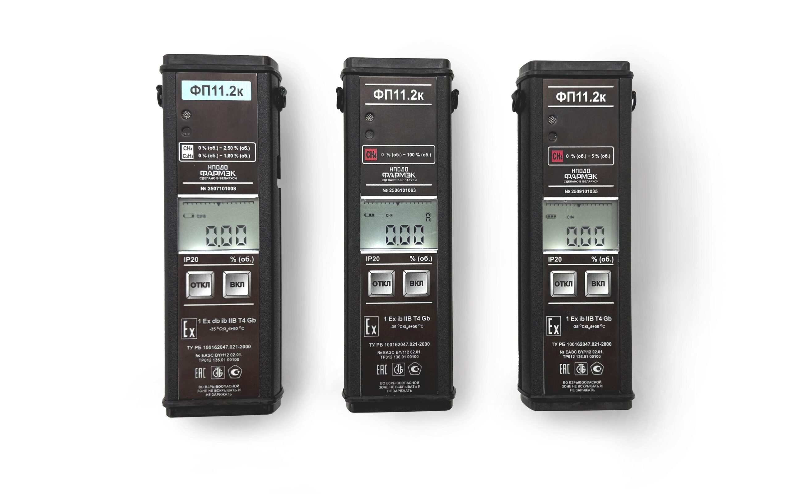 - Метан (CH4) и Пропан (C3H8) — для газоанализатора с термокаталитическим сенсором производства НПОДО «ФАРМЭК»