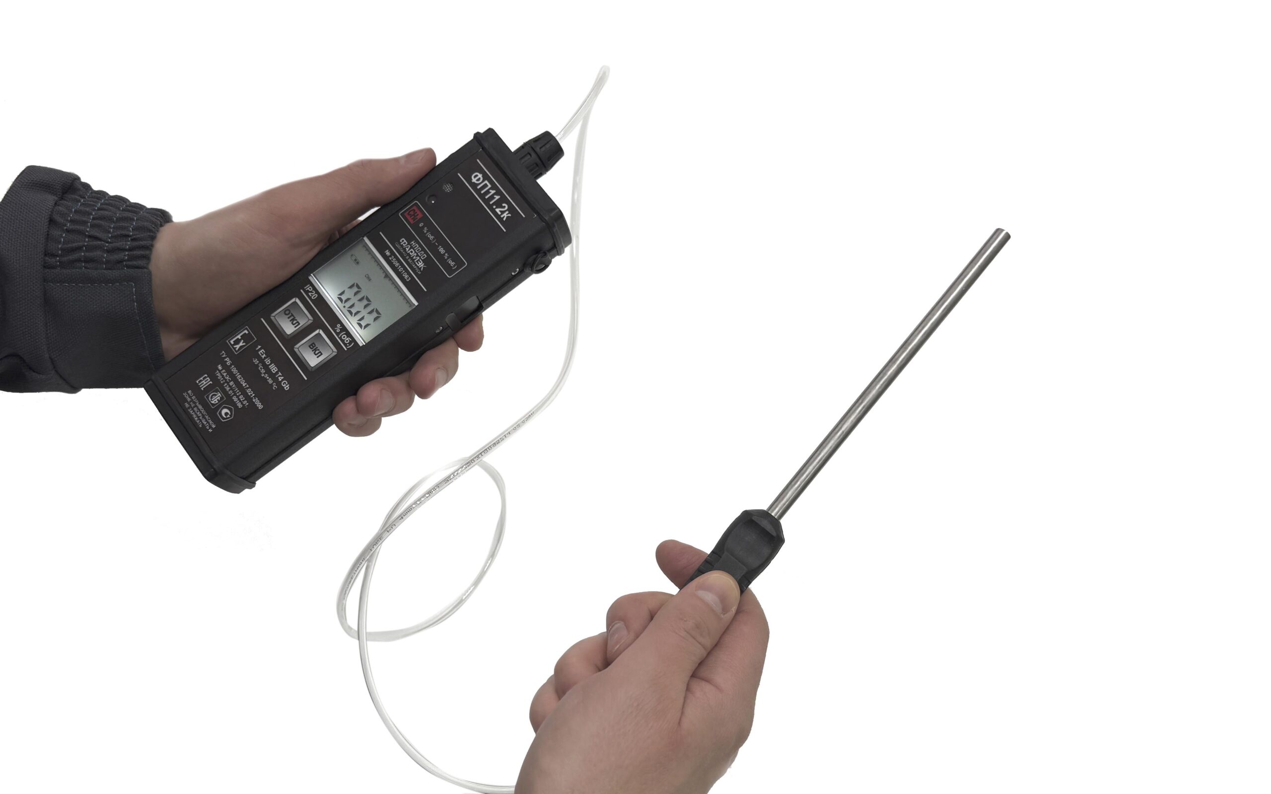 - Защита термокаталитического сенсора от отравления — при превышении максимально допустимой концентрации газа прибор автоматически отключает сенсор и микронасос.