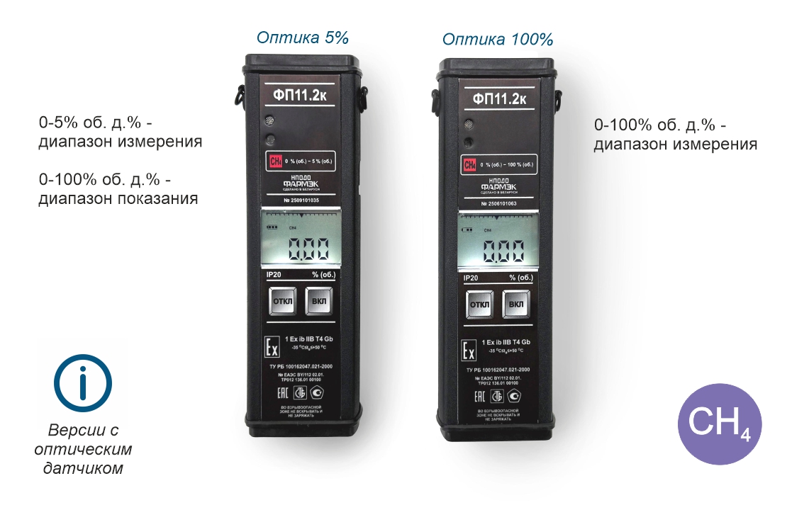 - Метан (CH4) — для газоанализатора с оптическим сенсором